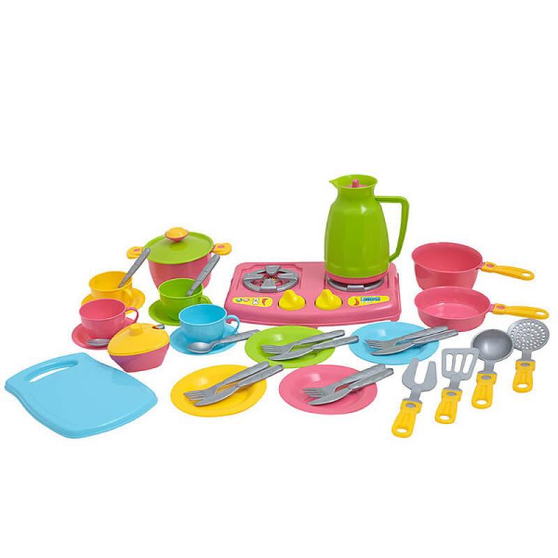 Іграшка «Кухонний набір 7 ТехноК» неодмінно сподобається малюкам за цікаву комплектацію та приємні кольори. Варіантів гри з іграшкою безліч – готувати обід для себе та матусі, накривати стіл для друзів та запрошувати ведмедиків в гості. Також з набором посуду можна влаштувати приємні посиденьки прохолодними літніми вечорами або взимку під теплими пледами. Іграшки покликані не тільки приносити радість, а й допомагати вивчати нове, пізнавати світ. Тому важливо, щоб іграшки були зрозумілими та створеними на основі знайомих дитині речей. «Кухонний набір 7 ТехноК» виготовлений у яскравих кольорах. Привабливість посуду надають кольорові ручки сковорідки, каструлі та інші елементи. Особливістю набору є варильна поверхня з газовими конфорками та ручками, що повертаються та імітують включення газу. Різні сюжетно-рольові ігри розвивають у дітей уяву та фантазію, мислення, дрібну моторику, комунікативні та соціальні навички. Іграшка виготовлена з міцного якісного пластику без запаху та без гострих країв Для дітей від 3-х років. Пакування — сітка з кольоровою картонною етикеткою. В наборі 38 елементів (в т.ч. стільниця, кавник та дощечка для нарізки) виконаних в оригінальній кольоровій гаммі модельної лінійки кухонних наборів ТехноК.