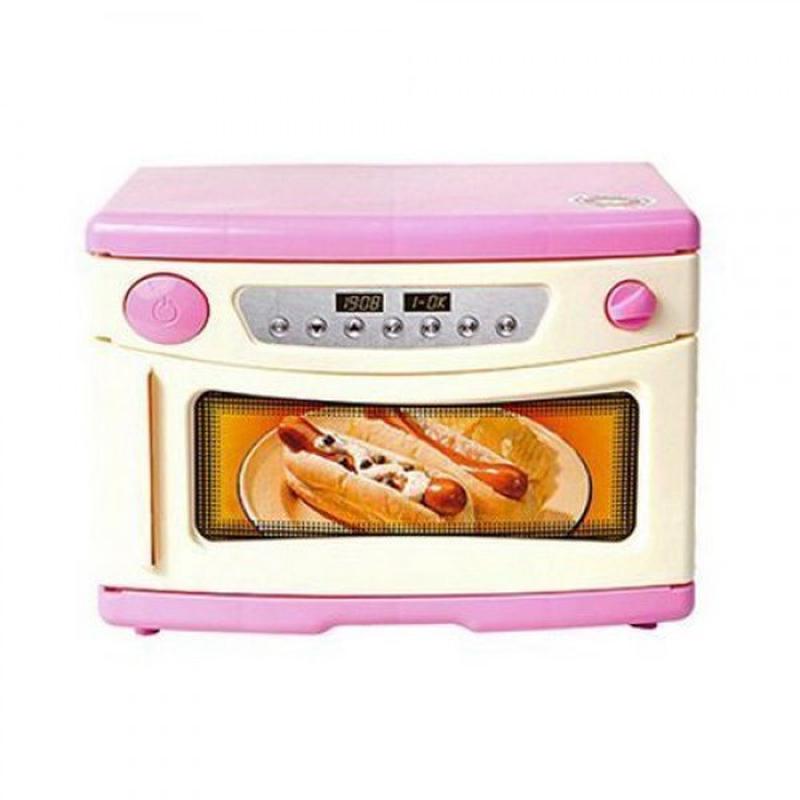 Набір складається з яскравої пластикової мікрохвильової печі. Вона має дверцята, які можна відчиняти, кнопка та важіль. У комплекті також: каструлька з кришкою, каструлька з ручкою та кришкою та сковорідка._