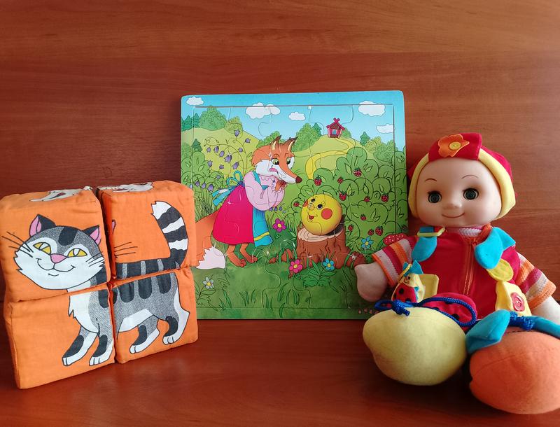 Пазл, кубики м'які, лялька для розвитку мілкою моторики. Стан добрий. Потребують прання.