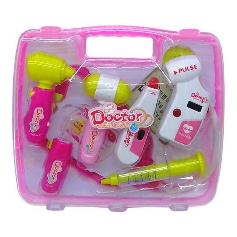 Лікарський набір в валізці вміщує все, що потрібно справжньому лікарю: - Пульсометр з механічним екранчиком (значення можна змінювати вручну) та підсвічуванням; - Градусник з механічним екраном та підсвічуванням - Дзеркальце з підсвічуванням - Отоскоп із підсвічуванням - Шприц - Молоточок - Стетоскоп - Таблиця для перевірки зору - Бейджик лікаря Бренд: MIC Упаковка: Пакет Колір: Рожевий Вага з упаковкою: 480 г Габарити в упаковці: 24 x 26.5 x 5.5 см Країна виробник: Китай Матеріал: Пластик Комплектація: Пульсометр Градусник Дзеркальце Отоскоп Шприц Молоточок Стетоскоп Таблиця для перевірки зору Бейджик лікаря