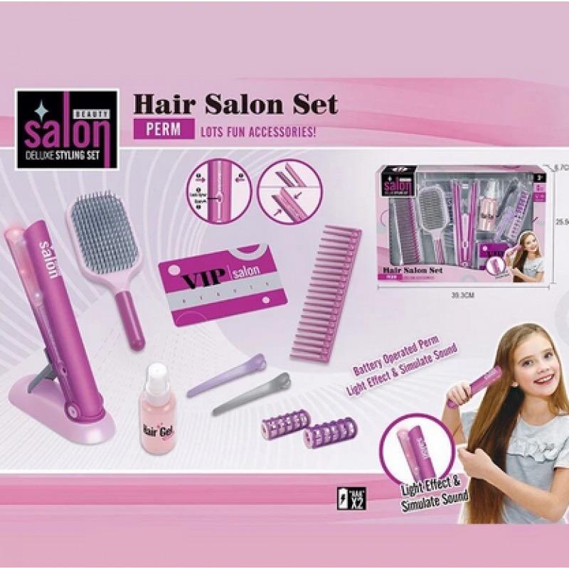 Набор парикмахера в подарочной упаковке. Стайлер, звук, подсветка, 2 заколки, 2 щетки, бигуди, баночка для спрея.