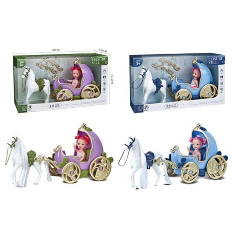 Карета з коником і лялькою, озвучена, зі світлом, 2види, в коробці 686-849 р.28*9,5*15,5см