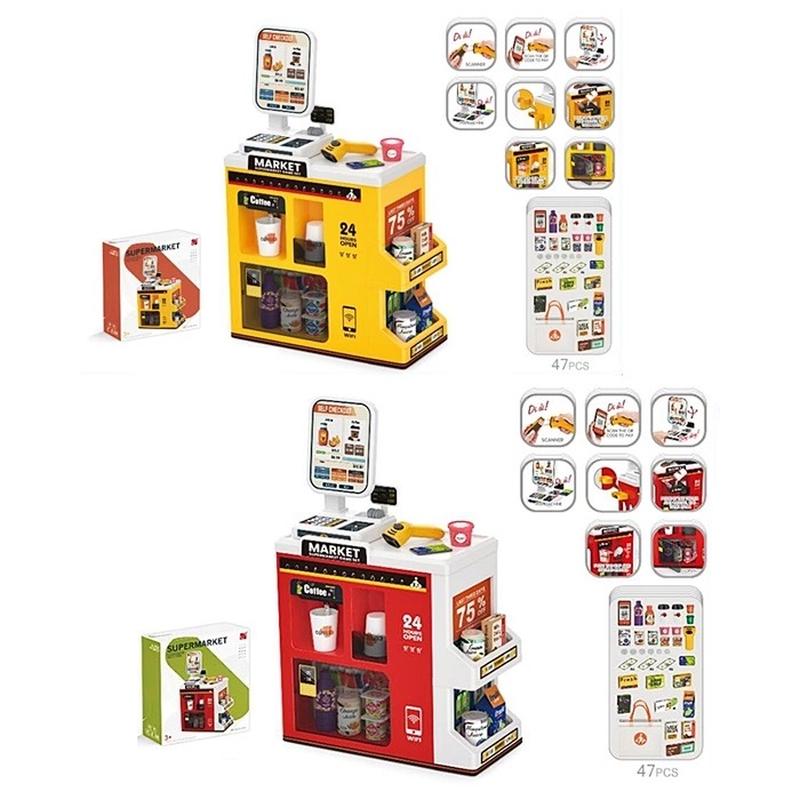 Набір Магазин 668-150-151 2 кольори, прилавок, кошик, продукти, каса, сканер, гроші, 47 предметів, світло, звук, на батар., в коробці 44*39*11см