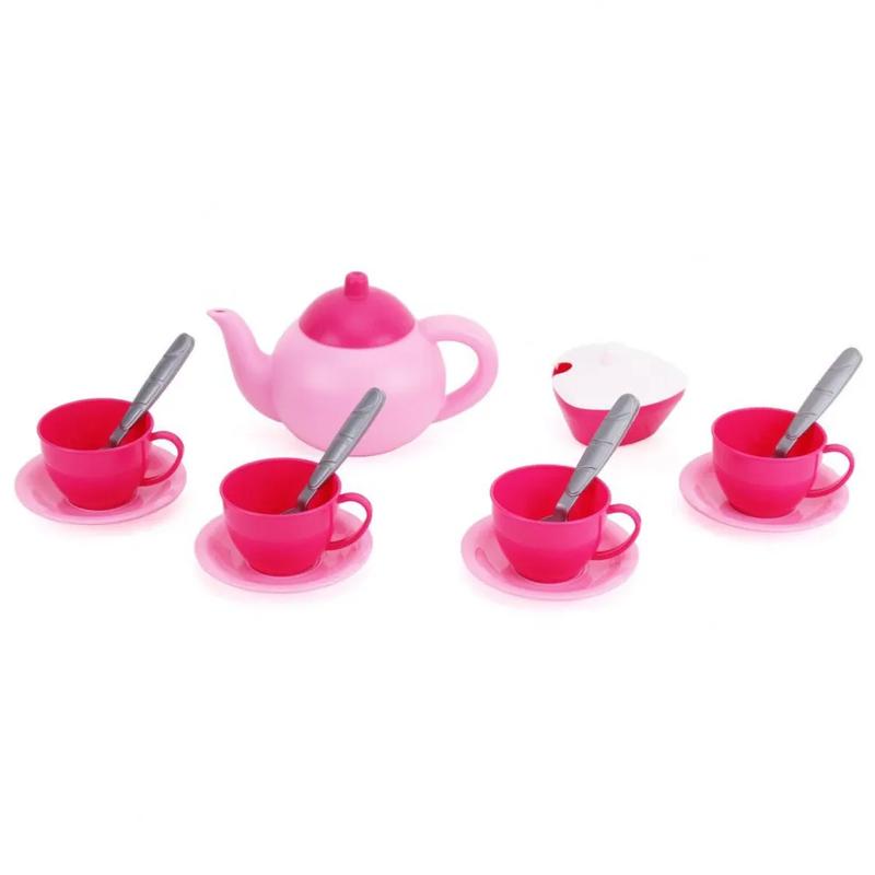 Яскравий пластиковий кухонний набір для гри в чаювання. У комплекті: пластиковий чайник з кришечкою, 4 чашки на блюдечках, 4 ложечки і цукорниця з кришкою. Розмір чашечки: 4,5 см. Набір виготовлений з якісних і безпечних матеріалів. Комплектація: Чайник з кришкою, 4 блюдця, 4 чашечки, 4 ложечки, цукорниця з кришкою