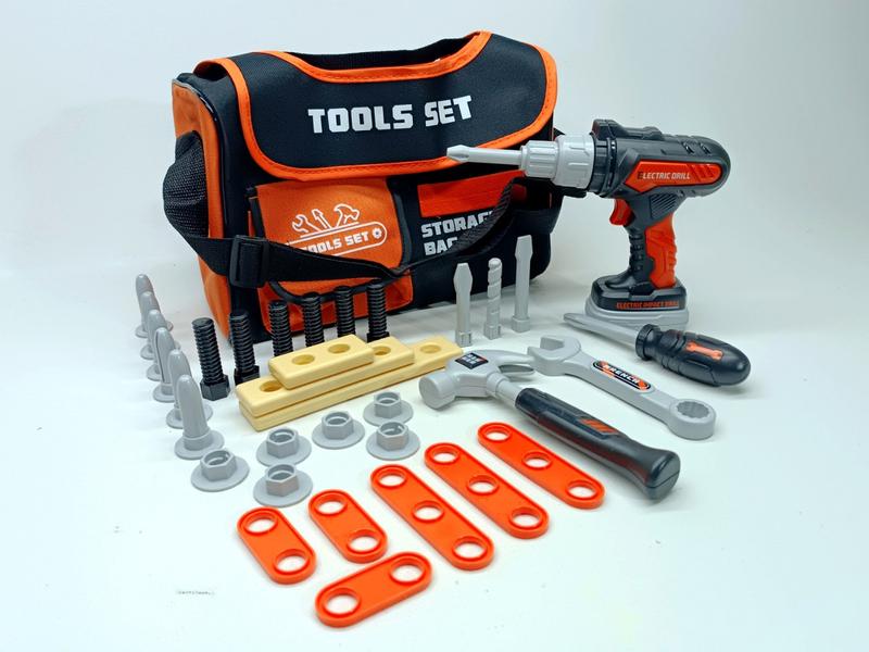 Набор инструментов Shantou "Power Tools" представляет собой идеальный комплект для маленьких мастеров и мастеровиц, которые хотят познакомиться с миром строительства и ремонта. Этот набор не только развивает творческие способности ребенка, но и формирует навыки работы с инструментами, что может быть полезно в будущем. Состав набора: 1. Шуруповерт: - Основной инструмент в наборе, который предназначен для закручивания и откручивания винтов. - Работает от трех батареек типа AAA (не входят в комплект), что обеспечивает ему стабильную работу. - Оснащен функцией вращения вперед и назад, что делает его многофункциональным и удобным в использовании. - Шуруповерт разработан с учетом безопасности детей, имеет удобные ручки и защитные элементы. 2. Молоток: - Необходимый инструмент для забивания гвоздей и выполнения задач, требующих удара. - Имеет безопасный дизайн, чтобы минимизировать риск травм при использовании. 3. Отвертка и гаечный ключ: - Эти инструменты помогут детям закручивать и откручивать винты и гайки, развивая мелкую моторику и координацию движений. - Простой и интуитивно понятный процесс использования. 5. Насадка на шуруповерт или отвертку: - Включает различные насадки, которые позволяют адаптировать шуруповерт или отвертку для работы с различными типами винтов. - Увеличивает функциональность инструмента и делает игру более разнообразной. 6. Болты и гайки: - В комплекте также присутствует набор болтов и гаек, которые можно использовать для практических заданий и игровых сценариев. - Способствуют развитию логического мышления, так как дети учатся соединять различные элементы. Все инструменты аккуратно упакованы в удобную сумку, что позволяет легко хранить и переносить набор. Сумка выполнена из прочного материала и имеет яркий дизайн, что делает ее привлекательной для детей. Набор инструментов Shantou "Power Tools" -- это отличный способ развить у детей интерес к строительству и рукоделию. Он подходит для игр как дома, так и на улице, и станет замечательным подарком для любого маленького мастера.