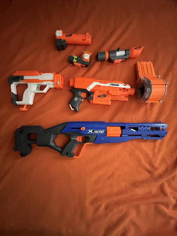 Набір два бластера два приціла , дуло , магазин на 25 патронів