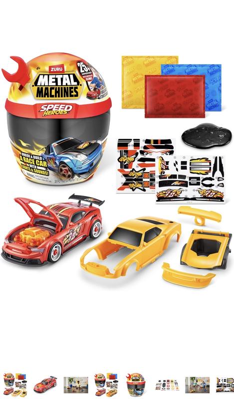 Сідайте за кермо власного гоночного автомобіля з Metal Machines Speed Heroes! Відкрийте гоночний шолом і пройдіть всередину більше 25 сюрпризів, щоб побудувати свій дворовий автомобіль. Налаштуйте дизайн та кузов гоночного автомобіля у міру його збирання! Киньте виклик своєму другові в перегонах і подивіться, який герой домінуватиме на гоночній трасі! Зберіть їх усіх!: Кожен Speed Hero має 2 престижні кузови автомобіля. Оживіть швидкість свого героя: подивіться, як ваш герой живе за допомогою вогню та звуку! У набір входить: 20 деталей Speed Hero, у тому числі: 1 двигун, 1 шасі, 4 колеса, 2 кузови, 1 слиз, 1 аркуш наклейок. Зберіть та налаштуйте всі 6 автомобілів! Характеристики: Вік: від 4 років Розмір: 30х20х23см Матеріал: Пластик