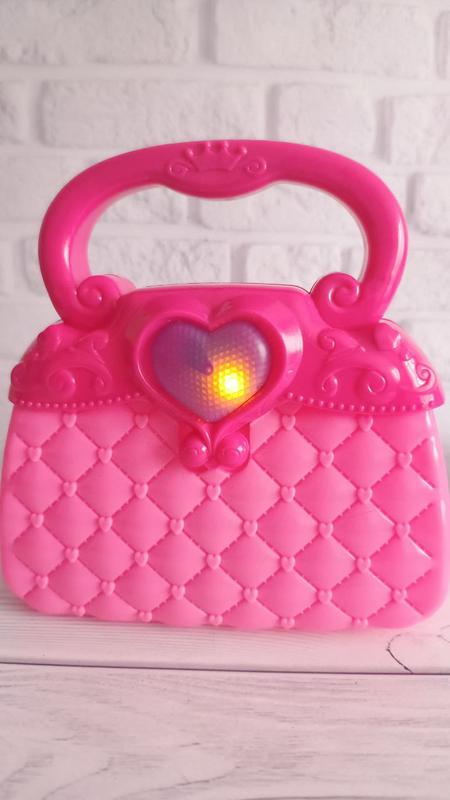 Рожева сумочка з пластику. Сердечко світиться, працює від батарейок (є в комплекті). Зручно зберігати прикраси для маленьких принцес. Стан дуже гарний, все працює. Розмір 18*19*6 см Доставка по Україні за рахунок покупця (Укрпошта тільки 100% оплата на карту, Нова Пошта можлива передоплата). Повернення немає. Оплата на карту Приват або Моно.