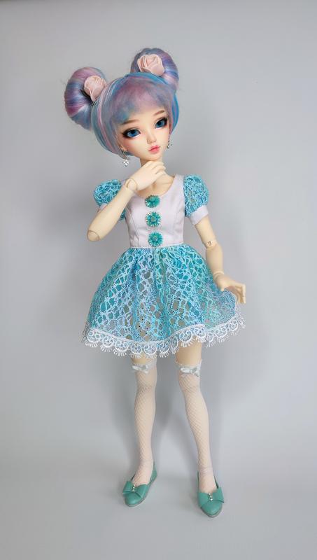 Пориньте у світ мрій разом із цим чарівним набором одягу для BJD-ляльки формату MiniFee (MSD, 1/4). Ніжний, мов цукрова вата, образ створений для справжньої казкової принцеси. У комплект входить: 🩵 Легка сукня оздоблена бірюзовим мереживом та ручними декоративними квітами 🧦 Ажурні панчохи-сіточки з мініатюрними бантиками 👠 Черевички з натуральної шкіри бірюзового кольору, прикрашені бантиками та стразами Кожна деталь створена вручну з турботою та увагою до дрібниць, щоб ваша лялька виглядала неповторно. Розмір: підходить для MiniFee та інших ляльок БЖД зі схожими параметрами. 🧵 100% ручна робота 🎁 Упаковано з любов’ю 📦 Готове до відправки