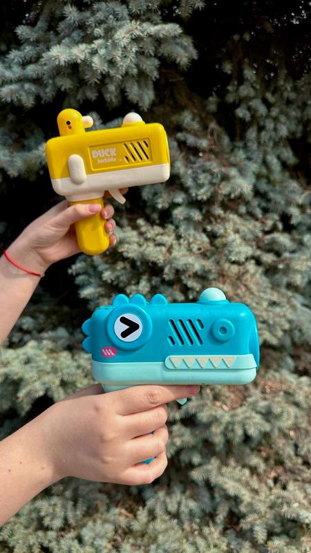 Автоматичні пістолети для мильних бульбашок у формі кумедного крокодильчика 🐊 та яскравої качечки 🐤 Один натиск кнопки і навколо вже літає сотня блискучих бульбашок, які переливаються на сонці 🌈 Світлові та звукові ефекти роблять гру ще більш чарівною, а яскраві кольори точно сподобаються діткам. ✅ Два варіантів: 🔹 Крокодильчик — у зеленому або блакитному кольорі. 🔸 Качечка — у яскравому червоному. 🎁 У комплекті є мильний розчин, просто вставляєте батарейки, натискаєте кнопку і веселощі починаються. 💰– 299 грн
