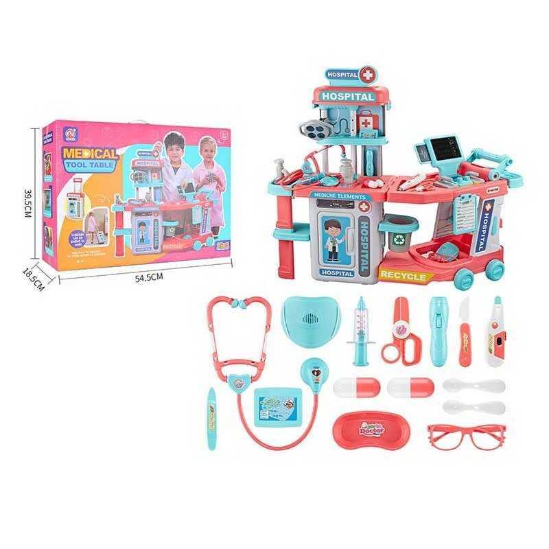 Откройте мир медицины с набором врача RX 690 C! Не переживайте, ведь на вас ждет помощь опытного врача! Этот уникальный набор включает в себя медицинскую стойку и стол, оборудованные всем необходимым для оказания первой помощи. В вашем распоряжении будут: - ЭКГ-аппарат для обучения основам кардиологии; - внешний дефибриллятор для имитации реальных медицинских процедур; - стетоскоп, который издает звук сердцебиения при нажатии на кнопку; - медицинский термометр и фонарик с подсветкой для лучшей видимости; - другие инструменты, позволяющие углубить знания о медицине. Дополнительные звуковые и световые эффекты придают игре особую атмосферу, а также способствуют развитию воображения и творчества у детей. Характеристики набора: - Размеры стойки: вариант 1 - 53х24х80 см, вариант 2 (с боковым креплением) - 64х24х80 см; - Размеры тележки: 30х32х50 см; - Легко собираемая конструкция стойки; - Удобная полка для хранения инструментов; - Элементы питания входят в комплект. Набор выполнен из прочного первичного пластика, что обеспечивает безопасную и длительную эксплуатацию. Развивайте медицинские навыки с RX 690 C!