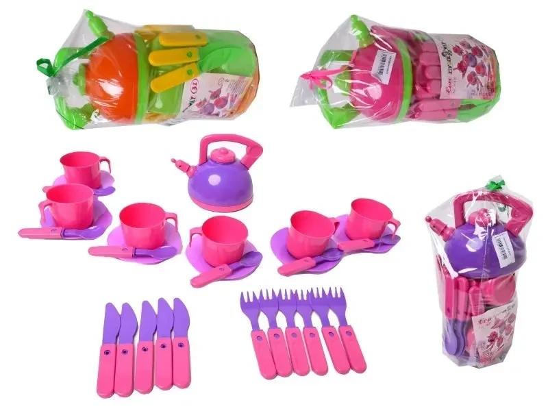 Характеристики: - B наборі 32 предмета. - Розміри чайника: 12-10-10 см. Розміри упаковки: Довжина: див. Ширина: см. Висота: см. B комплекті: 1. Чайник. 2. Чашка 6 шт. 3. Тарілочка 6 шт. 4. Ложка 6 шт. 5. Виделка 6 шт. 6. Ніж 6 шт. B асортименті 3 види.Матеріал: високоякісний пластик. Поставляється в пакеті.