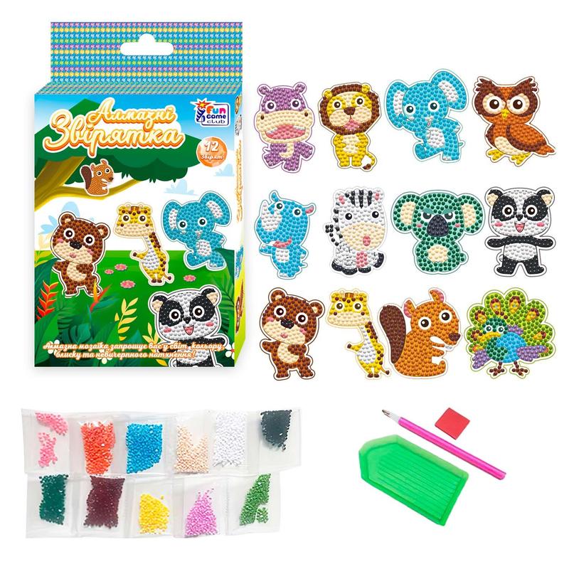 Алмазная мозаика 12 шт набор, 4 вида, стилус, наклейки, клей, поддон, алмазы