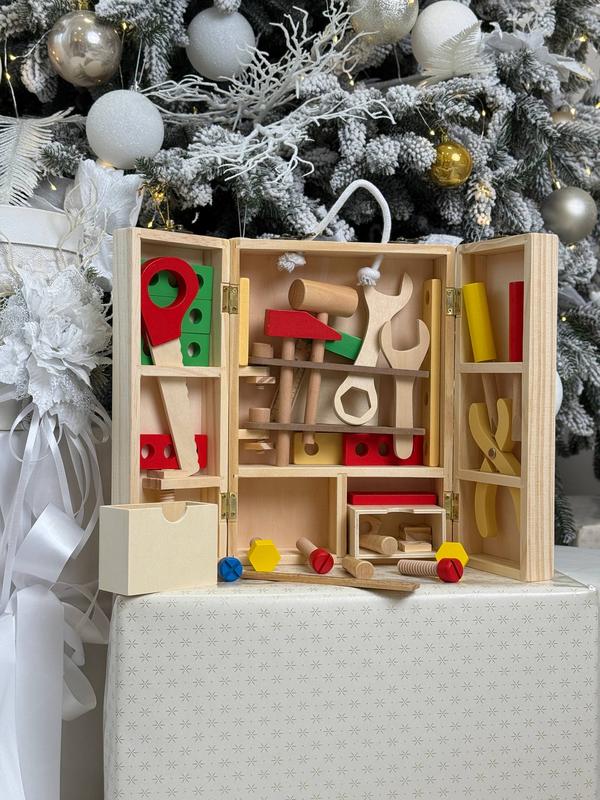 Набір🪚 деревʼяних інструментів⚒️ та деталей конструктора 🔩 у зручній валізі🧳 Розвиває мислення🤔фантазію💭 дрібну моторику🤏 Вивчайте інструменти ⚒️ разом з набором юного конструктора🧒 Збирайте літаки✈️ машинки🚗 та власні цікаві історії🧩 Справжнє дерево 🪵 це завжди більш приємні тактильні відчуття👌 зроблено з екологічно чистого матеріалу🍃 📐Розмір: 30х22х7см