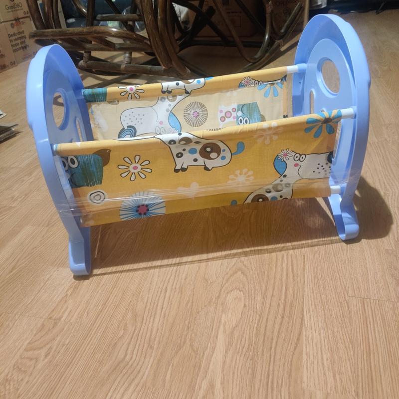 Ліжечко для лялькиСтан нормальний, але одна частина погано тримається — ми тимчасово закріпили скотчем. Можливо, потрібно буде підклеїти клеєм, щоб трималося краще. Інколи розпадається, тому враховуйте це. Розмір: 52×30 см Ціна: 70 грн За додатковими питаннями та фото — пишіть. Також дивіться інші мої оголошення.