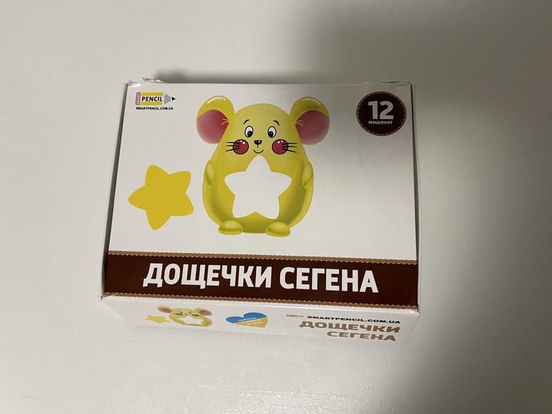 Мишенята з геометричними фігурами. Включає 12 різнокольорових фігур у формі мишенят з вирізами різних форм. Призначена для розвитку сприйняття форм, логічного мислення, уваги та мовлення у дітей. Вікова категорія: Рекомендовано для дітей віком від 3 до 5 років.