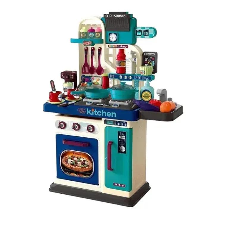 Дитяча ігрова кухня (плита, мийка, посуд) 008-969 A - перед замовленням, будь ласка, уточнюйте наявність (оптовий склад). Захоплюючий іграшковий набір мінікухні стане чудовим подарунком для маленького шеф-кухаря. Цей набір уособлює найкращі атрибути сучасної кухні, створюючи реалістичне середовище для творчості та гри. Іграшкова кухонна плита зі звуковими та світловими ефектами імітує роботу сучасної кухонної техніки. Особливості: - Висота зібраного набору 69 см; - 53 аксесуари: посуд, столове приладдя, продукти, баночки для соусів; - наявний відділ для духової шафи, холодильника, полички; - плита має світлову імітацію вогню та звукове відтворення приготування (працює від 3-х батарейок "ААА" 1.5V, не додаються); - кран має помпову подачу води; - наявні наклейки, які допоможуть додати реалістичності іграшкової кухні.