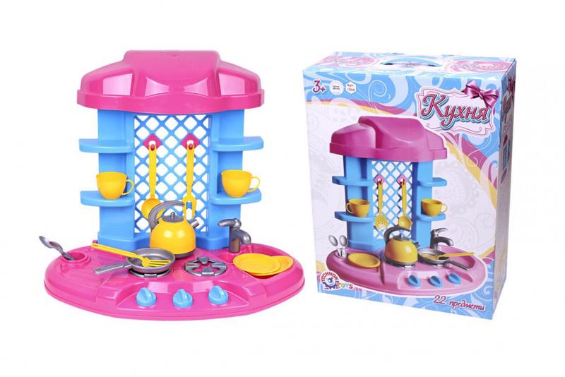 Большая игровая кухня идеально подходит для маленьких поваров-аматоров, которые любят готовить вместе с мамой. Играя можно придумывать собственные кулинарные шедевры, сервировать стол и угощать гостей, а также наводить порядок после пиршества. Такая сюжетно-ролевая игра воспитает в Вашем малыше фантазию, ответственность и самостоятельность. В набор входит 22 элемента, в том числе набор игрушечной посуды на две персоны( чашки, тарелочки, кухонные приборы и чайник).