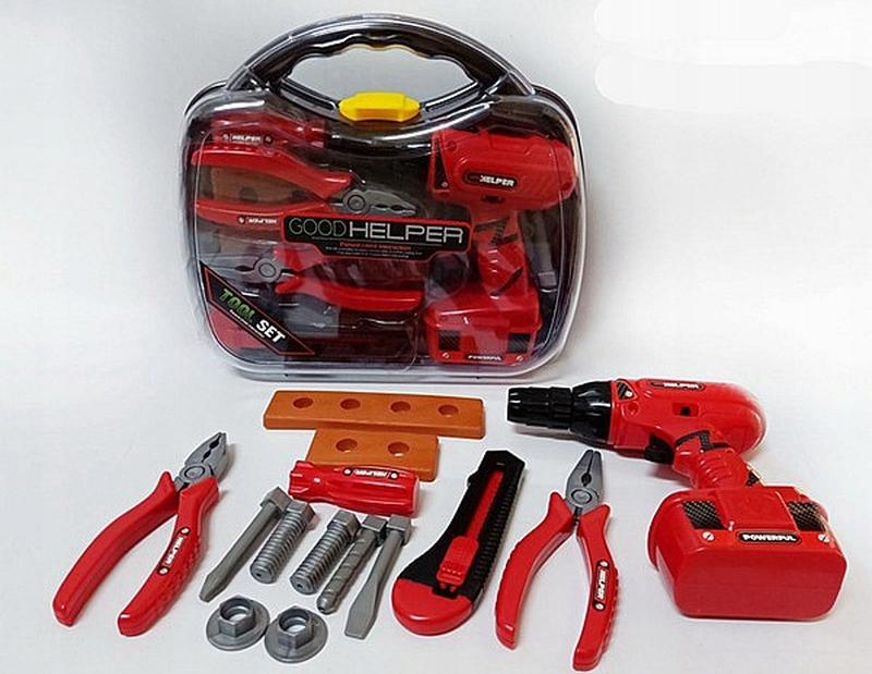 Перші інструменти маленького чоловіка — чудовий спосіб прищепити дитині інтерес до чоловічого заняття вдома та виховати справжнього господаря. До Ігрового набору входить: 1. Шурупокрут — працює від батарейок (не входять до комплекту) 2. Плоскогубці 3. Кусачки 4. Ножик 5. Дюбель