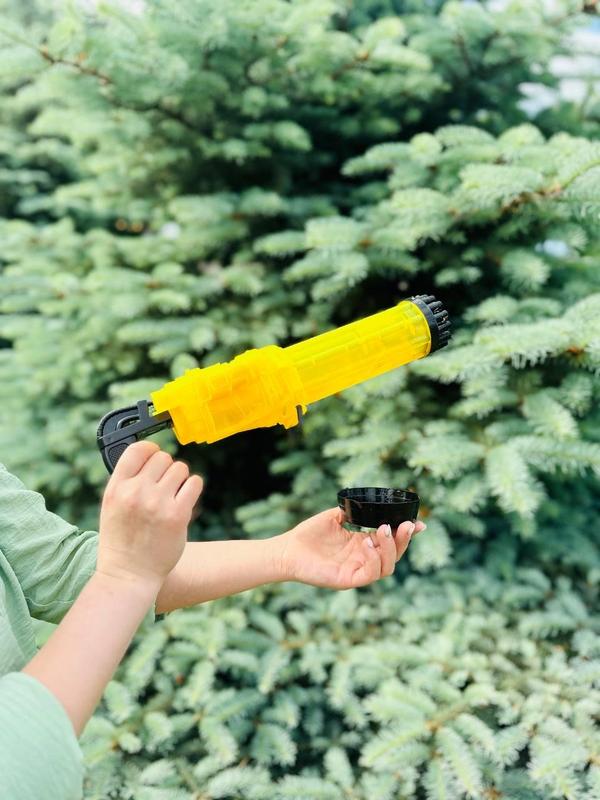 Мыльная игрушка пистолет с раствором для детей детская установка для мыльных пузырей желты...