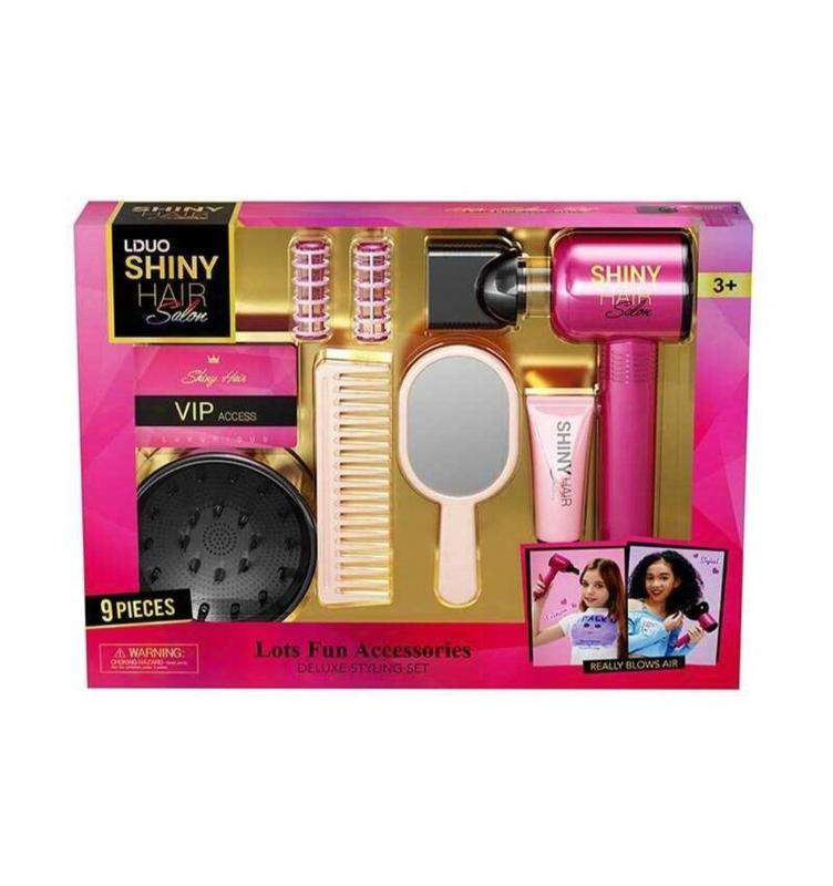 Набір перукаря 626002 9 аксесуарів, фен видуває повітря, 2 насадки, 2 бігуді, гребінець, люстерко