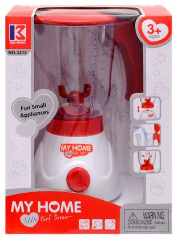 Блендер іграшка My Home 3212 У блендері відкривається кришка, можна заливати воду або інший напій. Під час натискання червоної кнопки починається змішування рідини. Тип живлення: 2 АА батарейки (не входять до комплекту) Матеріал: пластмаса Довжина: 20 см Розмір: 20 x 10 x 10 см; Колір: червоний, білий Розміри упакування: 23 x 17 x 12 см