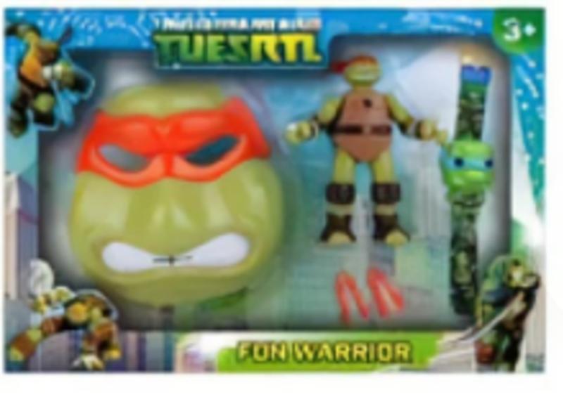 Набір черепашки ніндзя Мікі (Маска/Фігука/Часи) Велика подарункова коробка. Фігурка з проєктором!