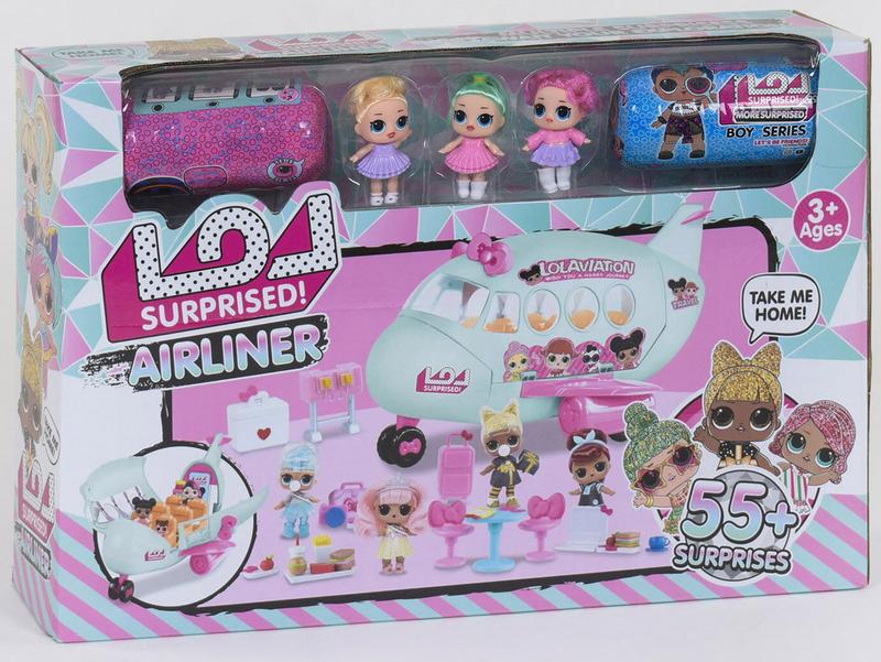 ## Кукла ЛОЛ с самолетом в наборе 3 куклы, 2 капсулы с куклами мальчик и девочка, самолет открывающий, аксессуары ## Самый желанный подарок для всех любителей шаров с сюрпризом - самолет для любимых кукол! Самолет выполнен в приятном розовом цвете с розовыми вставками. Колеса транспорта подвижны что делают игру интереснее. Также самолет раскладывается давая доступ внутрь, где расположено 6 посадочных мест с откидывающимися подносами. Капсулы укомплектованы одной из серии кукол с интересной прической и выразительными глазками, одеждой и аксессуарами для каждой мини куклы. Кукла в наборе К 5632 из серии "Airliner" входит: - самолет; - 3 куклы; - 2 капсулы (мальчик, девочка); - аксессуары. 3 капсулы с куколками в наборе! Размеры упаковки Набора кукол ЛОЛ: 54 см × 12 см × 35 см Упаковка: Коробка Возраст: от 3 лет Проверка и упаковка перед отправкой. Отправка ежедневно. Варианты оплаты: Оплата наложенным платежом при получении на Новой Почте без предоплаты. Наличными при доставке. Предоплата на карту - оплачиваете только стоимость товара.