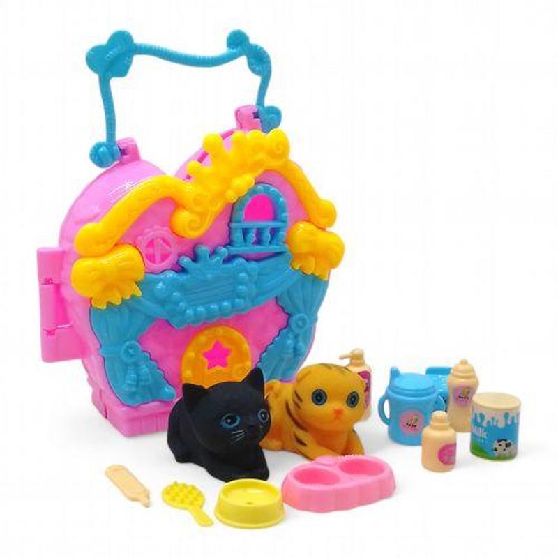 Игровой набор "Маленький домик" – это увлекательный комплект для детей, внутри которого находятся две резиновые фигурки котика или собачки. В наборе также есть аксессуары для ухода: миски, баночки, бутылочки, расческа и градусник. Идеально подходит для ролевых игр, приучая детей проявлять заботу и внимание к питомцам. Бренд: MIC Упаковка: Пленка Цвет: Розовый Вес в упаковке: 115 г Габариты в упаковке: 14 x 14 x 5.5 см Cтрана производитель: Китай Материал: Комбинированный Комплектация: Домик, 2 питомца, аксессуары
