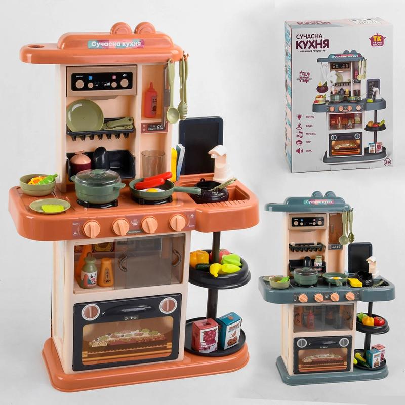 С современной кухней 65583 от известного производителя “TK Union Group” Ваша девочка сможет обыгрывать увлекательные сюжеты, представляя себя шеф-поваром первоклассного ресторана или милой, гостеприимной хозяйкой, которая готовит вкусный ужин для долгожданных гостей. Также данный игровой набор познакомит ребенка с основами поварского искусства и в наглядной игровой форме приучит к ведению домашнего хозяйства. Все элементы изготовлены из качественных безопасных материалов. Первичный пластик отличается высокой прочностью и легкостью. Отменно проработанный дизайн и интересный игровой функционал вдохновит юную хозяйку на приготовления вкусных блюд. Кухня представляет собой устойчивый игровой столик оборудованный вытяжкой, варочной панелью с двумя конфорками и мойкой с помповой накачкой воды. Также кухонный гарнитур оборудован ящиком для хранения посуды, продуктов и множеством дополнительных полочек. Эффекты плиты: - парогенератор; - подсвечивание комфорок; - звуки: жарки, варки, кипения воды, таймер. Эффекты вытяжки: - яркая разноцветная подсветка; - веселые мелодии; - регулировка громкости; - звук вытяжки. В игровой набор входит вся необходимая кухонная утварь и посуда, большое разнообразие продуктов и компактная досточка, на которой можно записывать самые любимые рецепты. Комплектация: - игровые элементы кухни; - продукты; - кухонная утварь и посуда; - досточка для рисования; - губка; - мел; - наклейки. Звуковые и световые эффекты варочной панели работают от 3х батареек типа “АА” - в комплект не входят. Звуковые и световые эффекты вытяжки работают от 3х батареек типа “АА” - в комплект не входят. Габариты кухни в собранном виде - 45.5х69х26.5 см.