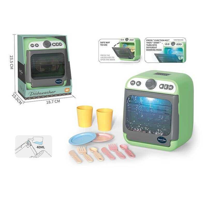 Ваша дитина любить грати у шеф-кухаря, але усе звичайне кухонне начиння в неї вже є? В нас є рішення для вас! Наша чудова посудомийка точно здивує вашу малечу, адже вона вміє симулювати роботу справжньої посудомийки, бризкаючи водою у спеціальній водонепроникній камері. Також виріб світиться й видає звуки справжньої посудомийки для найбільш реалістичного процесу гри. Особливості: - яскраві кольори; - у комплекті йдуть муляжі посуду та спеціальна пляшечка для заливання у виріб води; - підсвітка й звукові ефекти справжньої посудомийки; - кнопки для різних режимів миття посуду; - прозорі дверцята посудомийки; - наявний спеціальний отвір для заливання води у прозору камеру, яка захована у дверях посудомийки, де моторчик бризкає воду у симуляції роботи справжньої посудомийки; - працює від трьох батарейок типу “АА” (не включені до набору). * Характеристики та комплектація товару можуть змінюватися виробником без повідомлення