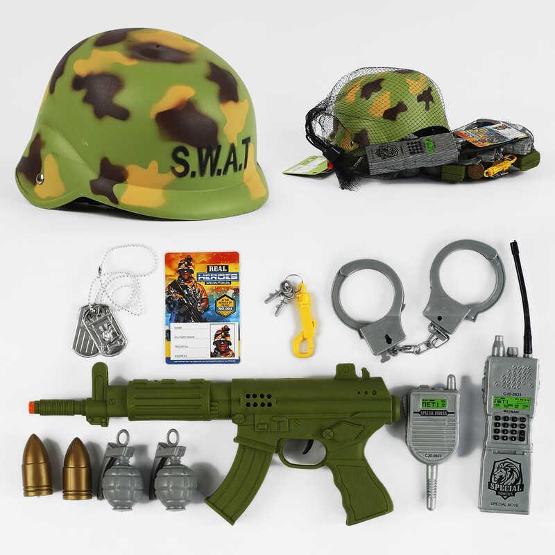 Військовий комплект 88364 (60/2) з каскою та аксесуарами у сітці
