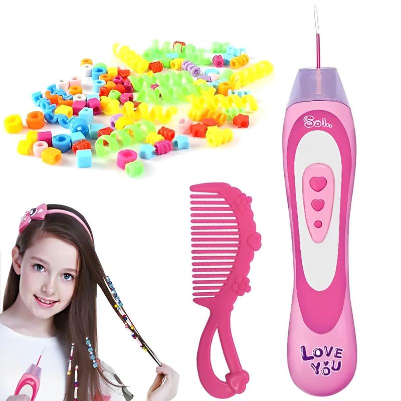 Створюйте стильні зачіски легко і весело! Унікальні образи та море радості для вашої маленької модниці! Переваги: - Розмаїття яскравих намистин - Проста та безпечна машинка - Легкість використання - Розвиває фантазію та стиль - Зручні аксесуари для волосся - Створення унікальних зачісок - Безпечні та якісні матеріали Опис: Бісер для волосся -- це мрія кожної маленької модниці! З цим набором ваша дочка зможе втілити найсміливіші ідеї, створюючи унікальні зачіски та висловлюючи свою індивідуальність. Яскраві намистини, різноманітні форми та відтінки дозволяють легко додати в зачіску колір і стиль, роблячи кожну прикрасу на волоссі особливою і неповторною. Основний елемент набору -- зручна машинка для кріплення намистин. Вона робить процес прикраси волосся швидким і простим, дозволяючи без особливих зусиль фіксувати бусинки на пасмах. Достатньо одягнути бусинки на гачок, зафіксувати пасмо волосся і опустити рухливу кнопку вниз -- і намистинки акуратно розмістяться на волоссі, додаючи зачісці оригінальності. Характеристики: - Тип: набір для прикраси волосся - Пол: для дівчаток - Матеріали: безпечний пластик - Вік: від 6 років - Упаковка: картонна коробка - Розмір приладу: 28х5 см - Колір: рожевий Комплектація: - Пристрій для кріплення намистин - Гребінець - 7 видів намистин - Резинки - Різнокольорові спіральки - Упаковка