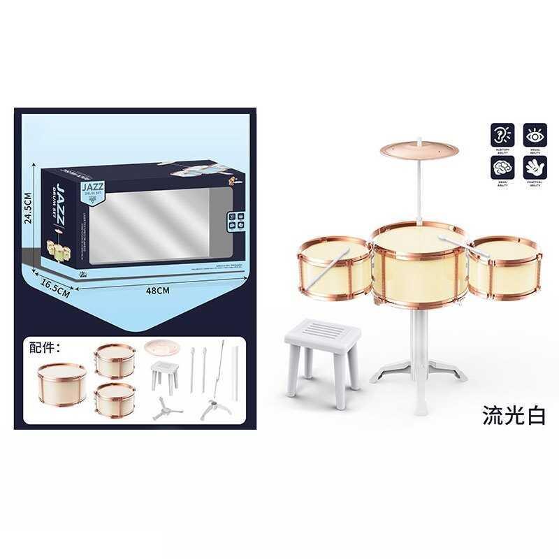 Компактная барабанная установка для малышей Стильная барабанная установка XBL 993-4 создана специально для детей, которые хотят научиться играть на барабанах. Она имеет современный дизайн и включает все необходимые элементы для первого знакомства с музыкой. - В комплекте 8 элементов для полноценной игры - Три барабана разного диаметра: 23 см, 16 см - Тарелка, стульчик и палочки для удобства - Высота стульчика 19 см, адаптирована для детей - Развивает ритм, слух, координацию и творческое мышление