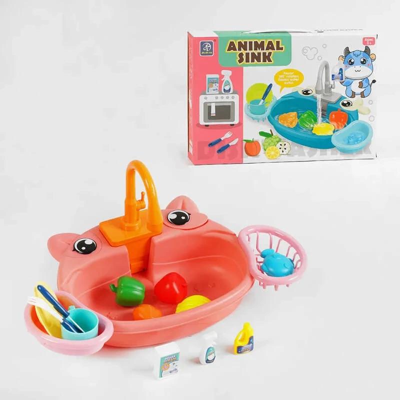 Іграшкова мийка для дітей з функціями справжньої кухонної мийки Ця мийка 829 A виконана у приємному рожевому кольорі та створена спеціально для маленьких дітей, які люблять гратися у кухню. Виготовлена з високоякісного пластику, вона має кран з можливістю вмикати і вимикати подачу води, а також обертанням на 180 градусів. У комплекті є деталі посуду, прилади та іграшкові продукти, які роблять гру ще цікавішою та допомагають розвивати логічне мислення, уяву та творчість. - Яскравий рожевий колір, що приваблює дітей - Функція подачі води у кран - Поворот крана на 180 градусів для зручності гри - Живлення від 2 батарейок типу AA (не входять у комплект) - В комплекті посуд, столові прибори та іграшкові продукти - Сприяє розвитку творчих і логічних навичок у дітей