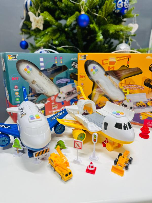 Цей потужний літак ✈️ перетинає «кордони», долає тисячі кілометрів і доставляє будівельну або службову техніку точно до місця призначення 🚛🌍 Реалістичні звуки, яскраве підсвічування та інерційний механізм роблять гру ще більш захопливою 💥 А рухлива платформа дозволяє легко вивантажувати спецтехніку — як у справжньому транспортному літаку! 🔹 Особливості: ✈️ Тематика: будівельна компанія або поліцейська служба 🔓 Фюзеляж відкривається 📦 Рухлива платформа з регулюванням нахилу для вивантаження техніки 💡 Яскраве підсвічування та інерційний механізм 🔊 4 кнопки зі звуками двигуна та голосом стюардеси 🚗 У комплекті: 2 машинки, елементи декору та тематичні наліпки