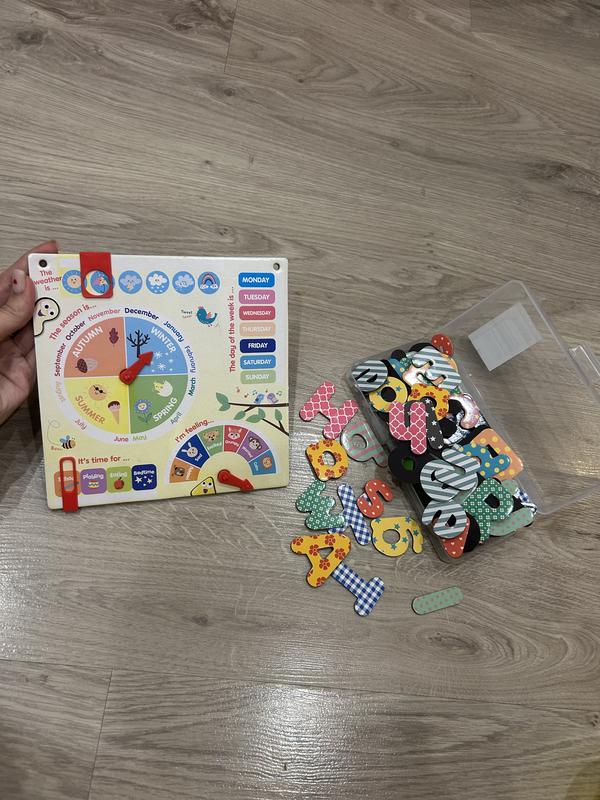 Магніти нові, але трішки пошкоджена коробка, на функціонал абсолютно не впливає.Дошка допомагає вивчати настрій, погоду, день тижня, місяці та багато іншого