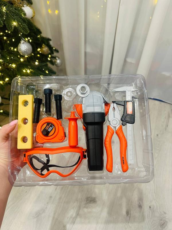 Набір iнструментів. 11 предметів, Шліфувальна машина (на батарейці), плоскогубці, окуляри. У коробці, 32-24-7,5 см. Ідеал .Стан нового.