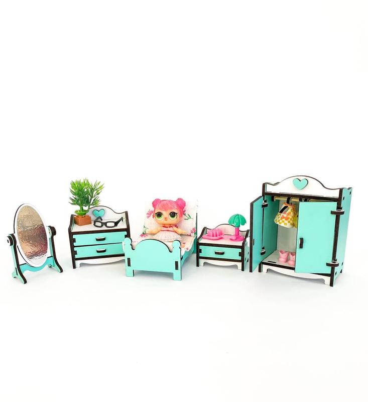 Спальний набір "Вірджинія"для лялечок LOL 💚💤 Оригінальний набір меблів для ваших принцес 👑 з висувними шухлядками🧦👒, рухомим дзеркалом🔍та відкривними дверцятами та вішачками 👕👖, який зробить гру дівчаток цікавішою та схожою до реального життя.💯 У комплект входить 5 елементів: - Ліжко 9,5*6,5 (д*ш) - 2-Д Шафа 8*11,5*5 (ш*в*г)+4 вішачки - 2Шх Комод 7*7*5 (ш*в*гл) - Приліжкова тумбочка 1Шх 5,8*5*4 (ш*в*гл) - Дзеркало напольне 5,5*8,5(ш*в) 📌Кольори: м'яка ятний, фіолетовий, рожевий🌈 📌Матеріал - міцний💪 та екологічний 🌳ХДФ, обклеєний зносостійкою, вологостійкою плівкою, яка є абсолютно безпечною для дітей та довго зберігатиме яскравість кольорів.🎨🖌️ ❗Унікальність наших меблів полягає в тому, що можна замовляти їх як у зібраному вигляді 🛠️🎁 так і в розібраному, що дає можливість провести час з дитиною,👨👩👧 збираючи та склеюючи разом меблі під час творчого процесу.👩🔧 📌 Будинок 1100 грн Вітальня 220грн Спальня 250грн Кухня 300грн.