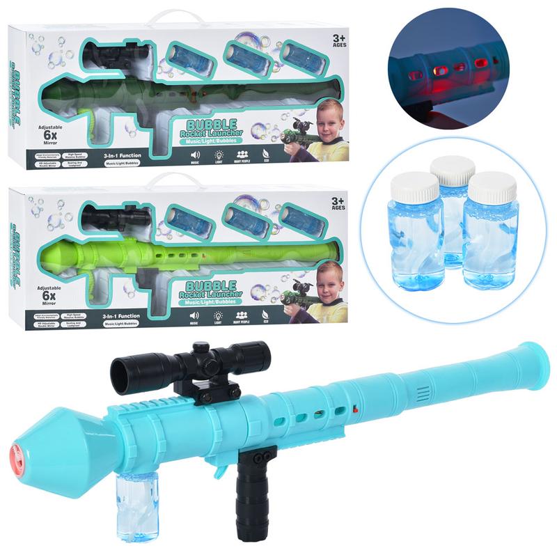захоплюючий ігровий гранатомет з мильними бульбашками, світлові та звукові ефекти, приціл, 3 баночки, розмір коробки 66-26-8,5 см