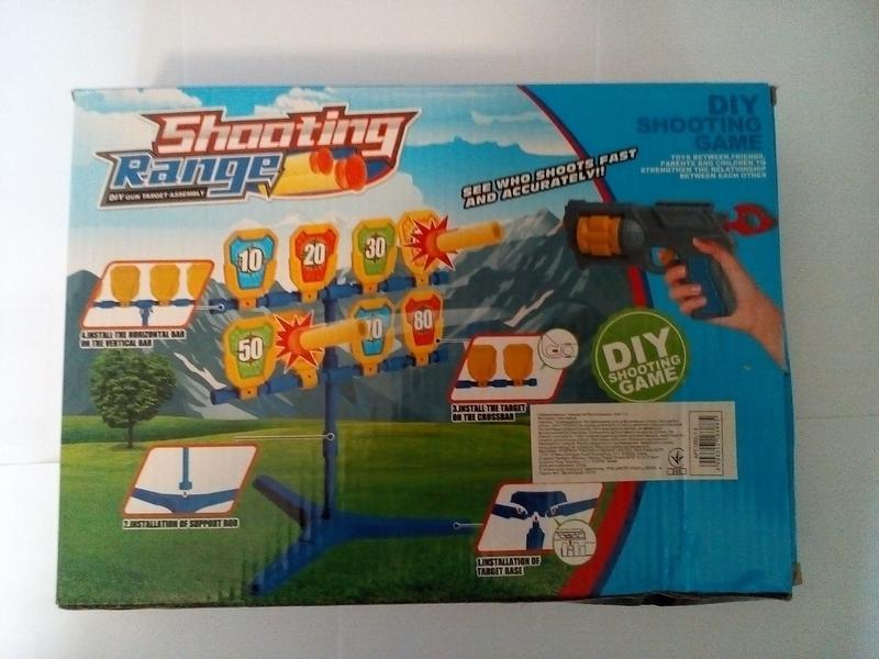 Висота зібраного штативу – 26 см. Довжина пістолета револьвера – 21 см. Довжина куль – присосок – 10 см. Пістолет та штатив виготовлені з пластмаси. У комплекті: пістолет, три кулі-присоски, штатив із мішенями. Упаковка – заводська коробка. Відправлення посилок щодня