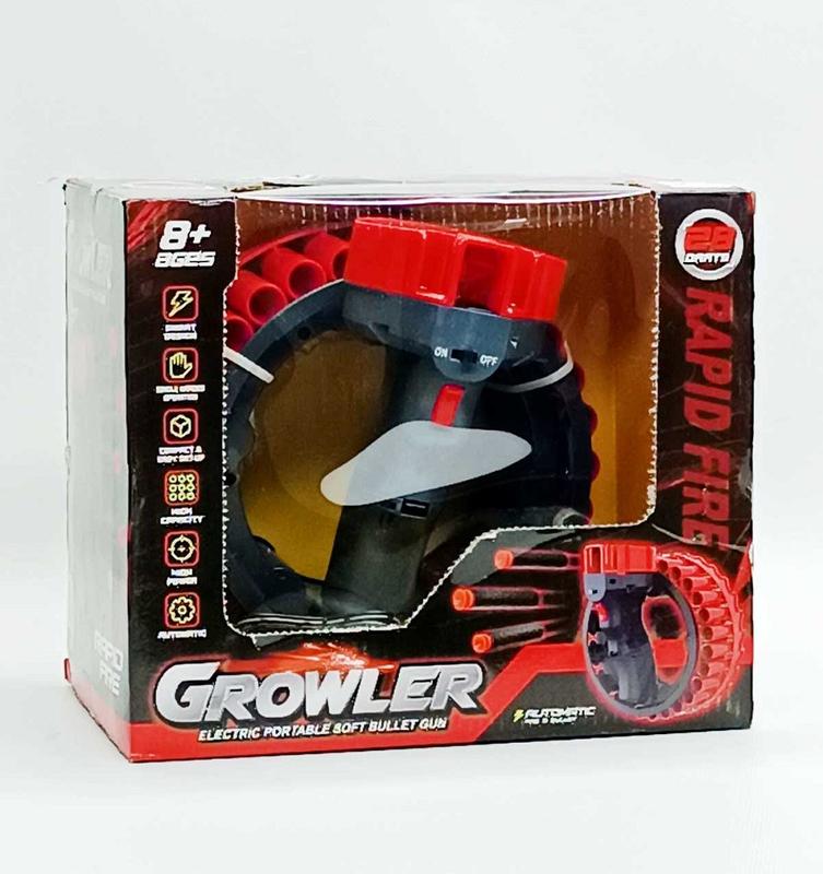 Бластер "Growler" поролонові кулі H01 працює від акумулятора. У наборі: - многозарядный бластер-кільце 18 см; - патрони поролонові 28 штук