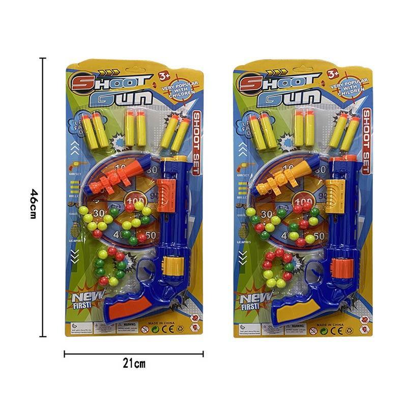Бластер 586 2 цвета, 6 поролон. снаряда+25 шаров, прицел, планш. 46*21см