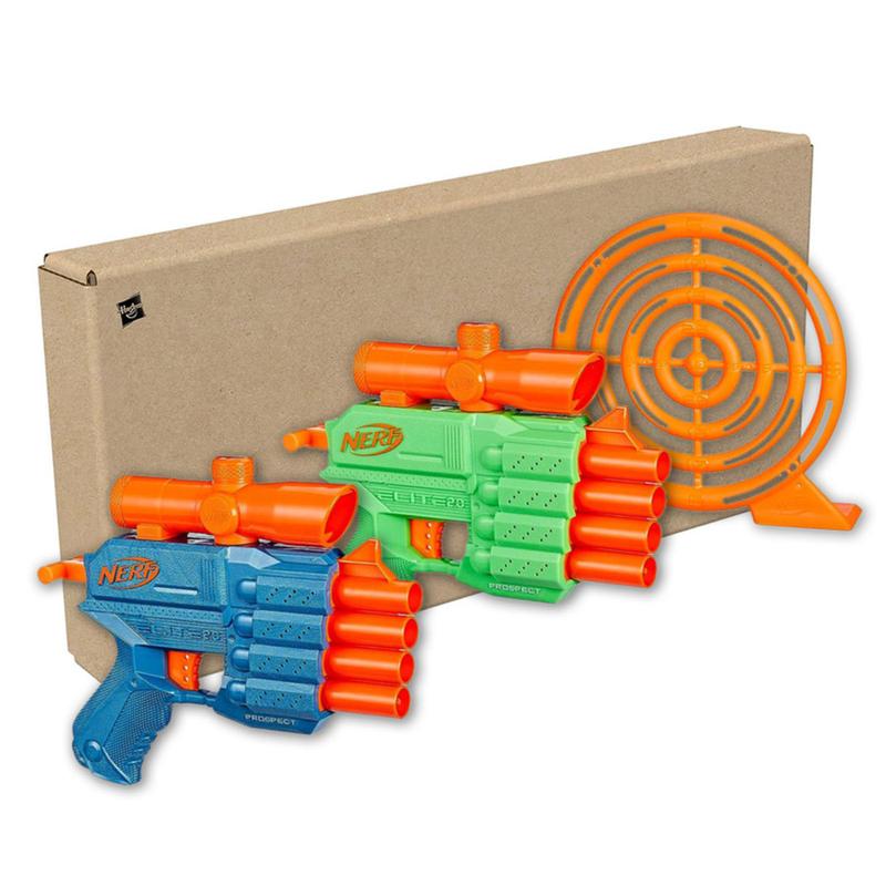 Набор Nerf Prospect QS-4 Face Off Target Set серии Elite 2.0 от фирмы Hasbro состоит из двух пистолетов Prospect QS-4, мишени и 12 пуль Nerf Elite. Набор оригинальный и новый продается в эко-упаковке без полиграфии (как на фото). Пистолет Prospect QS-4 - это механический четырех зарядный бластер имеющий прицел, его нужно перезаряжать после каждого выстрела, батареек не требует. Промо видео: *************************** Обзор: *************************** Размеры упаковки: 61x24x5 см Длина бластера: 21 см