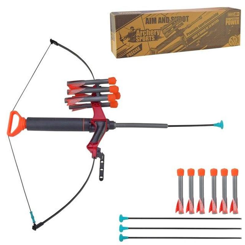 Арбалет зі стрілами 888B в коробці 17*10,5*56,5 см Цей комплект дозволить дітям насолодитися веселими годинами активної гри та розвивати свою координацію рухів та точність. Арбалет має компактний розмір, спеціально розроблений для дітей, зручну рукоятку та просту систему натягування, яка дозволяє надійно закріпити стріли перед пострілом. Виготовлений з безпечних матеріалів, арбалет не наносить шкоди дитині та її оточенню. Гра з дитячим арбалетом допоможе розвивати навички метання та спритність, а також викликати конкурентний дух між дітьми. Вона може бути ідеальним варіантом для ігрових сеансів на відкритому повітрі або навіть в приміщенні за умови відповідної безпеки та дорослого нагляду.