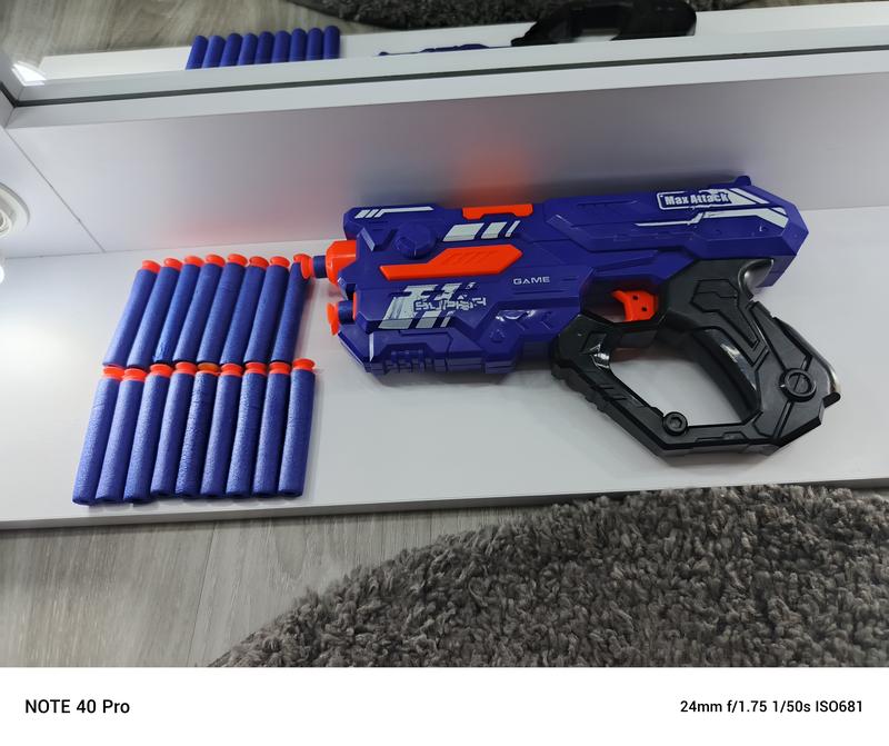 Цей бластер є ідеальним поєднанням потужності, швидкості та різноманітності в ігровому досвіді. Подвійний режим стрілянини: 1. Орбізи. 2. М'які кулі - Має максимальну потужність і дальність стрільби, дозволяючи вам домінувати на полі бою і вражати цілі на відстані 15 м. - Ергономічний дизайн бластера робить його легким та зручним у використанні навіть під час тривалих ігрових сесій. - Просте перемикання режимів: З легкістю перемикайтеся між режимами орбізів та м'яких куль, щоб адаптувати свою стратегію до поточної ситуації на полі бою. В комплекті - 20 м'яких пуль.
