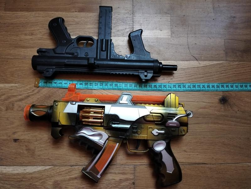 Іграшки для хлопців. Продаю тільки набором. Чорний автомат робить вистріл (гучний звук). Курки рухаються. Син грався мало, у презентабельно у стані.