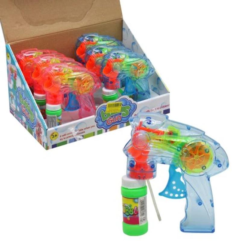 Пістолет виконаний у яскравому, оригінальному дизайні. Для роботи іграшки не потрібні батарейки, механізм спрацьовує при натисканні на курок - пістолет починає стріляти бульбашками, а всередині іграшки включається яскраве підсвічування. У комплекті з кожним пістолетом є пляшечка мильного розчину. Виконаний із якісного пластику. Для дітей віком від 3-х років.