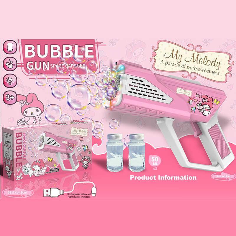 Пистолет для мыльных пузырей "My Melody" Погрузитесь в мир веселья и радости с нашим автоматическим пистолетом для мыльных пузырей "My Melody"! Этот яркий, розовый пистолет не только выглядит привлекательно, но и имеет множество функций, которые подарят вам незабываемые моменты. - Автоматический принцип работы: Легкое нажатие на спусковой крючок активирует генерацию пузырей, что делает игру еще более захватывающей. - Подсветка: Яркие огоньки во время работы пистолета создают атмосферу праздника и радости. - Аккумулятор 3.7V: Встроенный аккумулятор обеспечивает длительную игру без необходимости в постоянном подключении к электросети. - Комплектация: В комплект входят две бутылочки по 50 мл с мыльным раствором, что гарантирует продолжительность веселья. Этот пистолет идеально подходит для детей от 3 лет и станет отличным выбором для праздников, вечеринок или просто для игры на улице. Подарите своим детям безграничную радость и веселье!