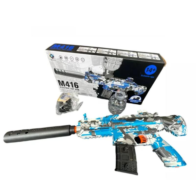Энергия игры в каждом выстреле! Особенности: Долговечность благодаря мощному аккумулятору. Реалистичный дизайн и функциональность. Безопасность для детей. Простота в использовании и зарядке. Высокая производительность и надежность. Электрический игрушечный автомат M416 с аккумулятором 7.4V – это современная игрушка, которая подарит вашему ребенку море положительных эмоций и захватывающих приключений. Реалистичный дизайн и детализация позволяют детям почувствовать себя настоящими бойцами. Изготовленный из прочных и безопасных материалов, этот автомат обеспечит долгие часы увлекательной игры. Благодаря мощному аккумулятору 7.4V, ваш ребенок сможет наслаждаться игрой без перерывов на подзарядку. Игрушечный автомат M416 оснащен автоматическим режимом стрельбы, что добавляет реалистичности и азарта в игру. Легкий и удобный в использовании, он идеально подходит для активных игр как на улице, так и в помещении. Этот автомат станет отличным подарком для юных любителей военной тематики и активных игр, способствуя развитию воображения и координации движений. Характеристики: - Тип: Электронный игрушечный автомат - Модель: M416 - Питание: Аккумулятор - Напряжение аккумулятора: 7.4V - Материал: Пластик - Цвет: синий - Возрастная категория: От 8 лет - Дополнительные функции: Звуковые и световые эффекты Комплектация: - Электронный игрушечный автомат M416 с аккумулятором - Упаковка